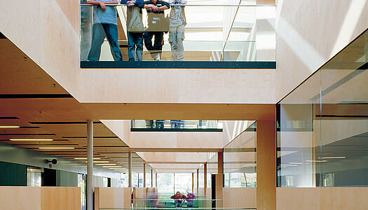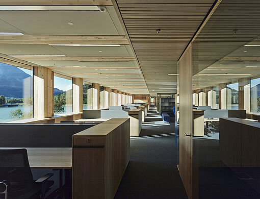 Die Ausstellung präsentiert das Bauen mit Holz als aktiven Beitrag zum Klimaschutz, bei dem der nachwachsende Rohstoff im Gebäude das Treibhausgas CO2 dauerhaft bindet. Jeder in Gebäuden verbaute Baum bindet wie ein „zweiter Wald“ CO2 und schafft Platz für neue Bäume in den Forsten, die erneut den CO2-Anteil in der Atmosphäre senken. Ökobilanzen von fünf Gebäuden veranschaulichen, wie durch den Einsatz des Baustoffs Holz der Anteil der nicht regenerierbaren Baustoffe bis zu 50 Prozent sinkt und sich der Anteil der nachwachsenden Rohstoffe vervielfacht. Ähnlich positiv fallen auch die Werte für das abiotische Ressourcenpotenzial und das Treibhauspotential aus. Beim Vergleich der Primärenergiemenge mit herkömmlichen Baustoffen fällt ins Gewicht, dass die Verbrennung von Holz den Primärenergiebedarf weiter senkt. Bei der Ökobilanzierung wurde ein Zeitraum von 50 Jahren von der Herstellung über die Instandsetzung bis zur Entsorgung betrachtet. Hierbei wurden unter anderem für die drei Holzneubauten Gemeindezentrum Ludesch (58%), Passivwohnhaus Samer Möl (60%) und das Finanzamt Garmisch Partenkirchen (50%) hohe Klimaentlastungen gegenüber einer Standardausführung ermittelt. Auch bei der Modernisierung der Schule Gundelfingen und von Wohnanlagen in München und Augsburg konnten Klimaentlastungen nachgewiesen werden.