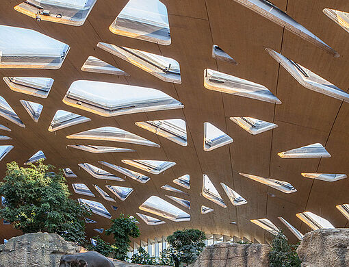 In den weiteren Räumen illustriert eine Vielzahl von Projekten, den technologischen Entwicklungssprung des Holzbaus in den letzten Jahren, der vor allem im urbanen Bauen neue Aufgaben erschlossen hat. Die Vorfertigung ermöglicht, dass auch komplexe öffentliche Bauten wie die Immanuelkirche in Köln oder der Kaeng Krachan Elefantenpark im Zoo Zürich industriell vorgefertigt und in kurzer Zeit störungsarm auf der Baustelle montiert werden. Die Gegenüberstellung der Multihalle im Mannheimer Herzogenriedpark von Frei Otto aus dem Jahr 1975 mit einem aktuellen Holzhochausentwurf verdeutlicht die Tradition von neuen Dimensionen im Bauen mit Holz. Ein Forschungsschwerpunkt der letzten Jahre ist die Verarbeitung von Laubhölzern zu verklebten Vollholzprodukten. Erste Gebäude mit diesem Werkstoff schließen den repräsentativen Reigen von Holzbauprojekten in der Ausstellung ab, den Hermann Kaufmann gemeinsam mit Winfried Nerdinger, emeritierter Professor für die Geschichte der Architektur und Baukonstruktion an der TU München, zusammengestellt hat.