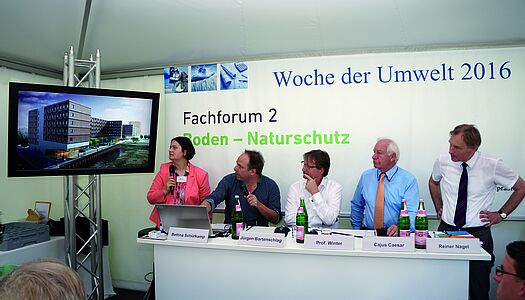 Insgesamt informierten sich bei der Woche der Umwelt knapp 12.000 Besucher in Park des Schlosses Bellevue darüber, wie lösungsorientierte Innovationen im Natur- und Umweltschutz entwickelt und Modellvorhaben praxisnah umgesetzt werden. Auf rund 4.000 Quadratmetern reichte das Themenspektrum der 200 Aussteller von Klimaschutz über Energie, Ressourcen, Boden und Biodiversität, Mobilität und Verkehr bis hin zu Bauen und Wohnen. Veranstalter der Woche der Umwelt, die 2016 bereits zum fünften Mal stattgefunden hat, war die Deutsche Bundesstiftung Umwelt (DBU).