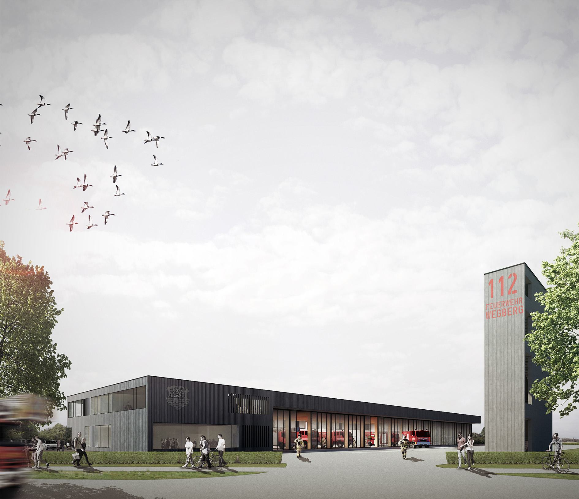Die oberste Priorität einer Feuerwehr liegt in der Rettung von Leben, die Verantwortung der Gemeinde in einer leistungsfähigen Feuerwehr. Diese und viele weitere Aspekte sollten berücksichtigt werden. Beim aufwendigen Vergabeverfahren der Stadt Wegberg setzte sich das Berliner Architekturbüro Scheidt Kasprusch durch. Der selbstbewusste Siegerentwurf sieht den Neubau der Feuerwache als Holzbau vor, der durch die Vereinigung von Funktionalität, Wirtschaftlichkeit und nachhaltiger Architektur überzeugt.