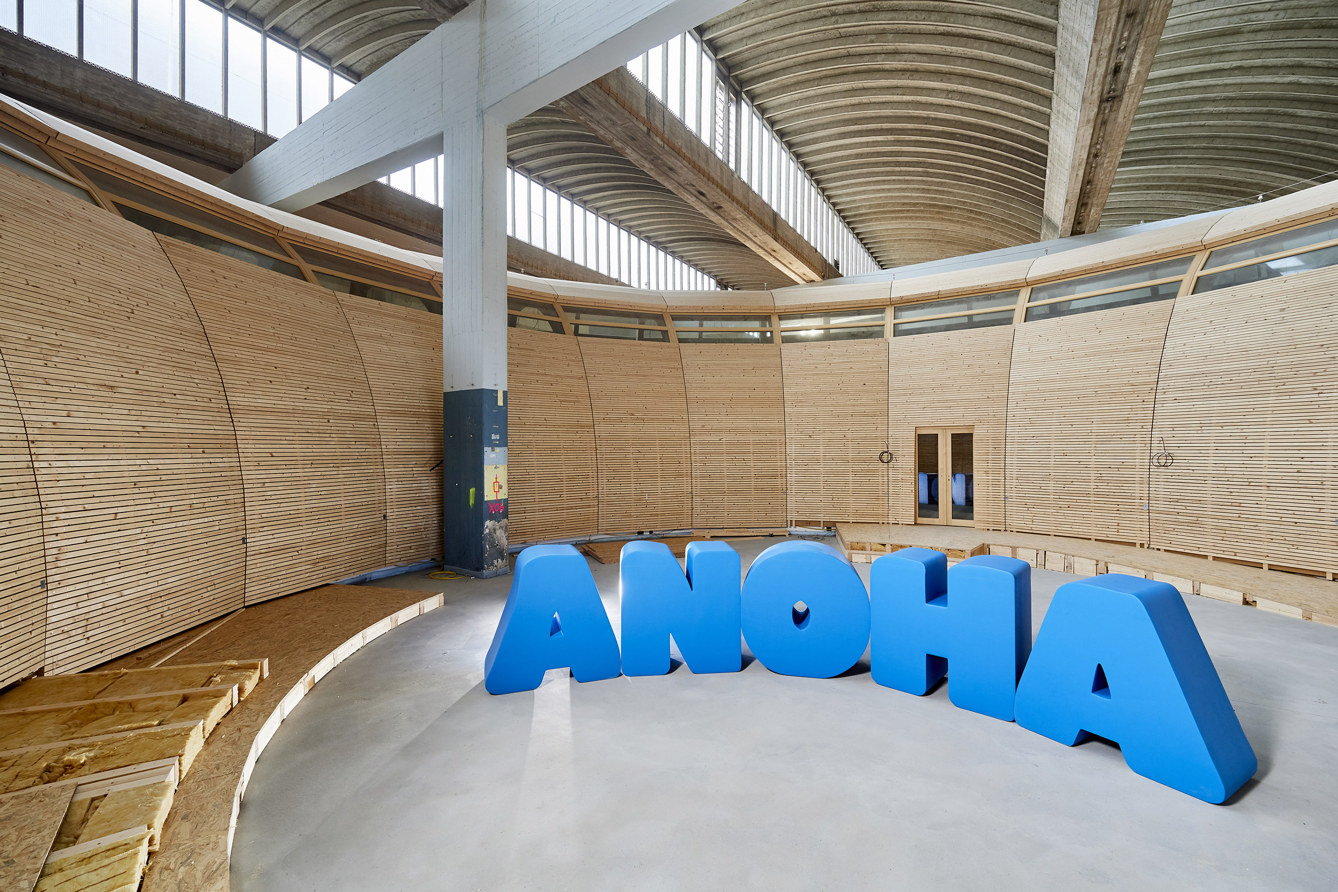Die runde Arche aus Fichtenholz stellt mit ihren 28 Metern Durchmesser das Herzstück der neuen Kinderwelt ANOHA des Jüdischen Museums in Berlin Kreuzberg dar. Sie wirkt wie ein Raumschiff und vermittelt die moderne Interpretation der Arche Noah und das respektvolle Miteinander von Mensch, Natur und Tier.